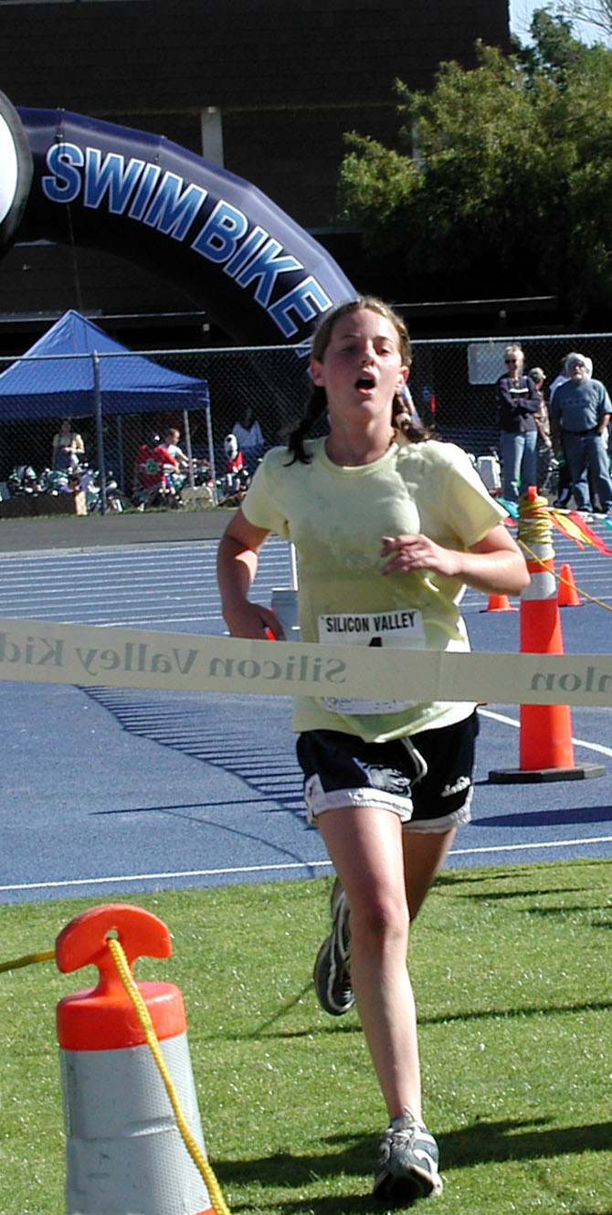 This is Elle finishing her triathalon. She finished second overall, quite a good performance, and it was her first triathalon too. (picture is 200k)