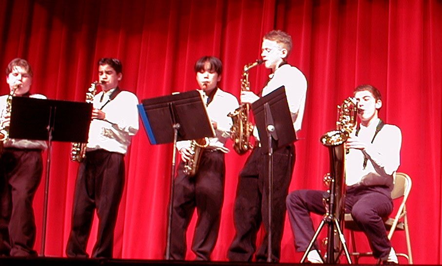 A sax quintet I participated in as an 8th grader. I'm on the very right, sitting down, playing the Bari Sax.